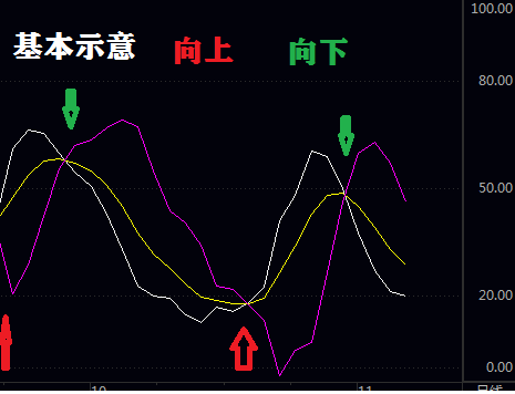 先看看KDJ指标的图形 猜猜KD会怎么变 ? 红绿键头的基本意思能懂吗 ?