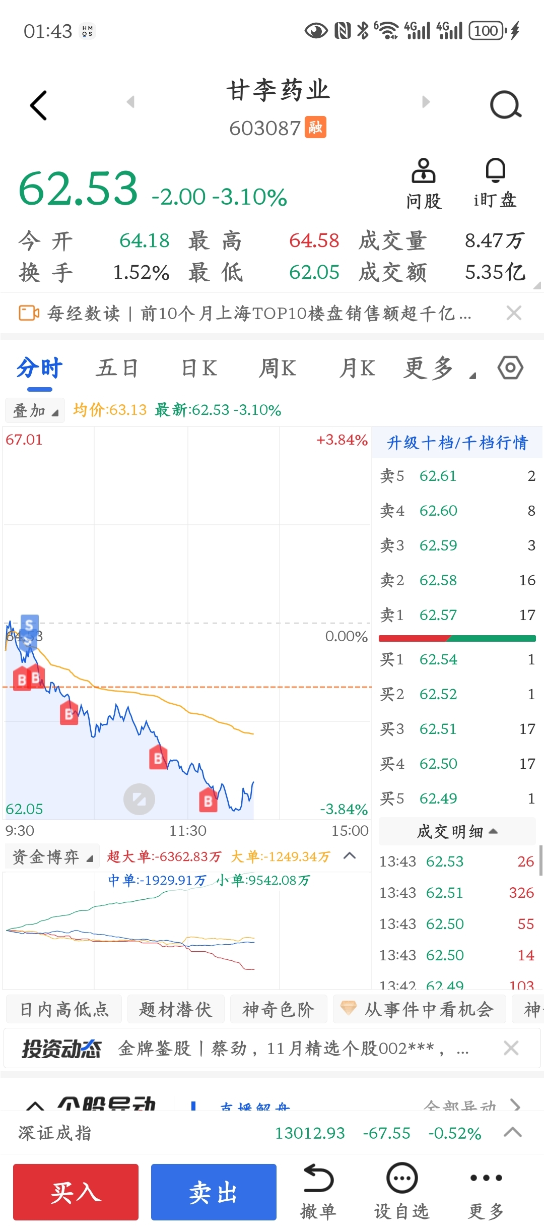 $甘李药业(SH603087)$ 自己选的股,愿赌服输…