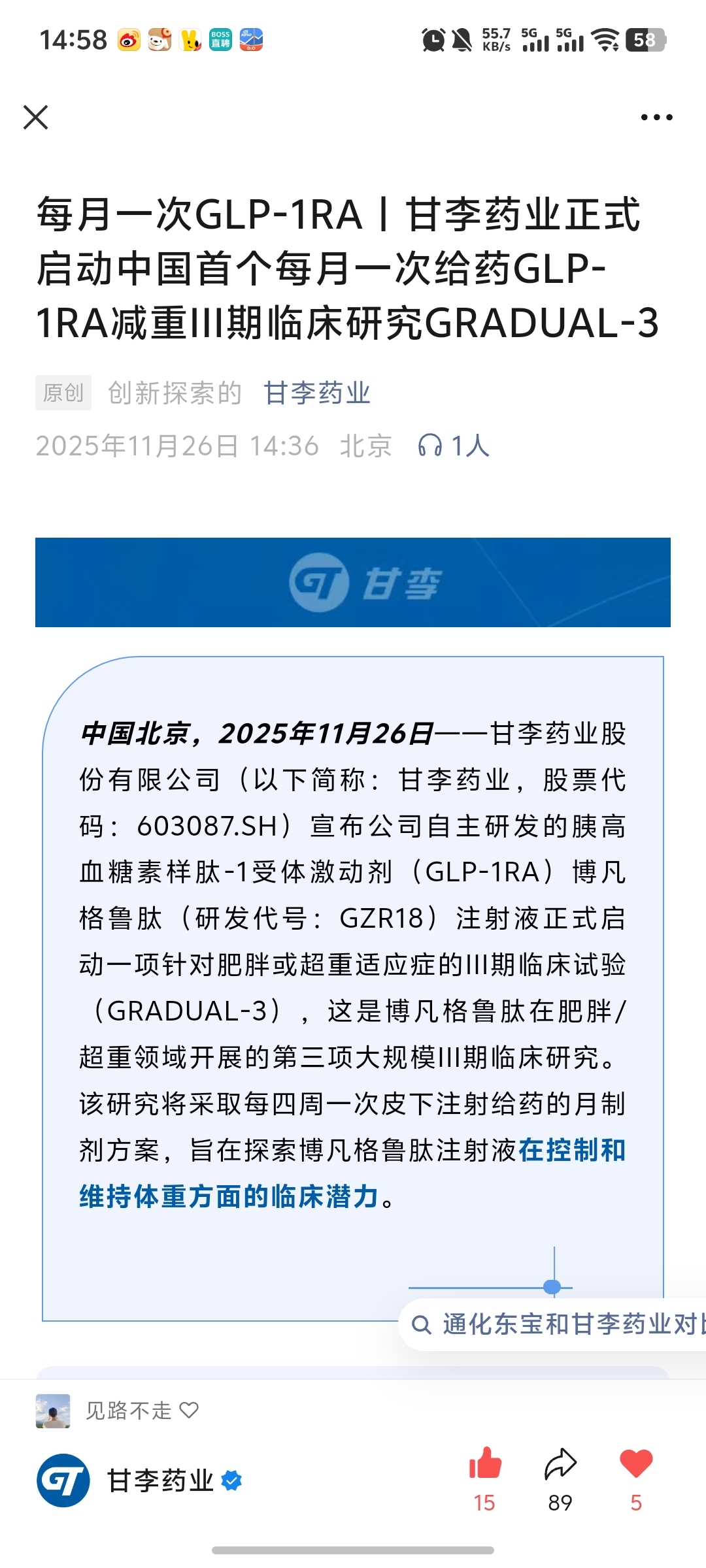 $甘李药业(SH603087)$ 还能说啥,越来越好吧,主力不拉升,等着干啥呢???