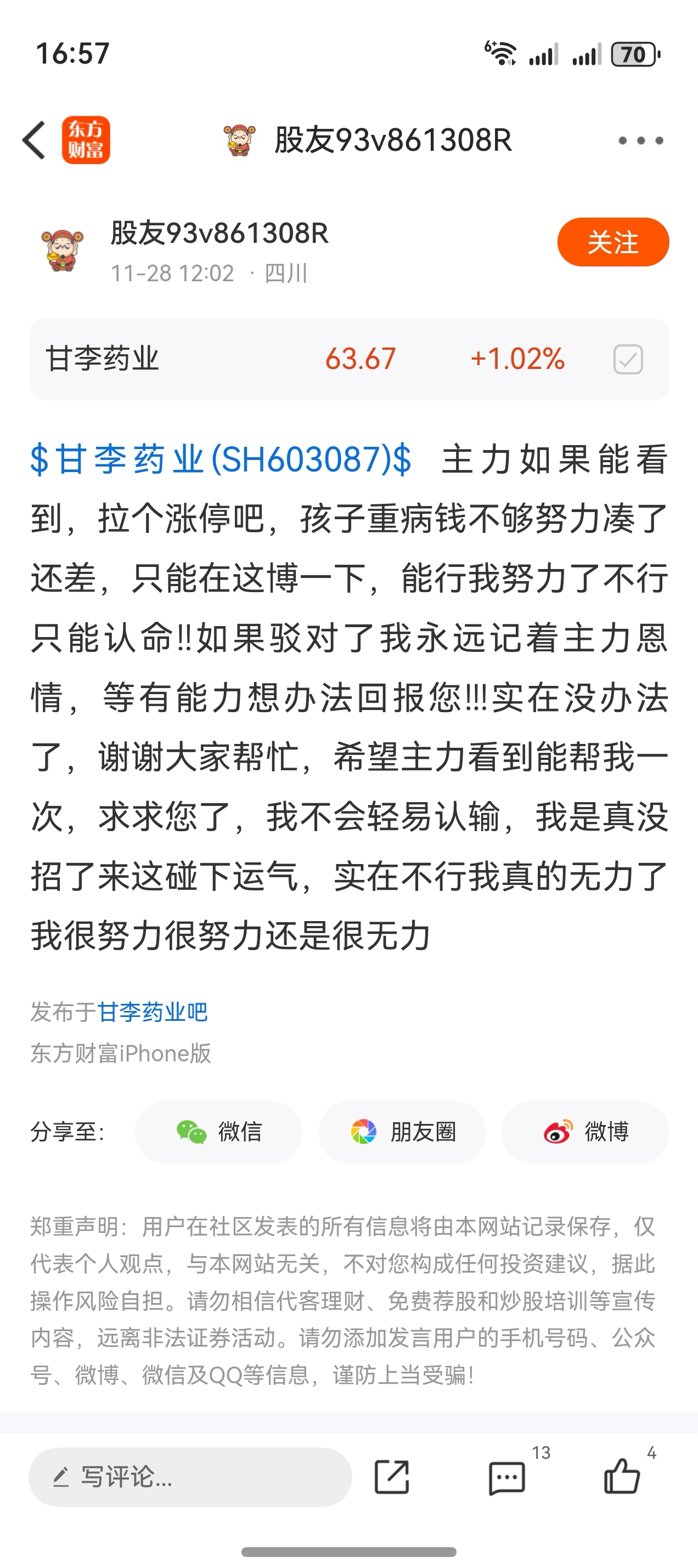 温馨提示: 1.根据《证券法》规定,禁止编造、传播虚假信息或者误导性信息,扰乱证券市场;2.用户在本社区发表的所有资料、言论等仅代表个人观点,与本网站立场无关,不对您构成任何投资建议。用户应基于自己的独立判断,自行决定证券投资并承担相应风险。《东方财富社区管理规定》