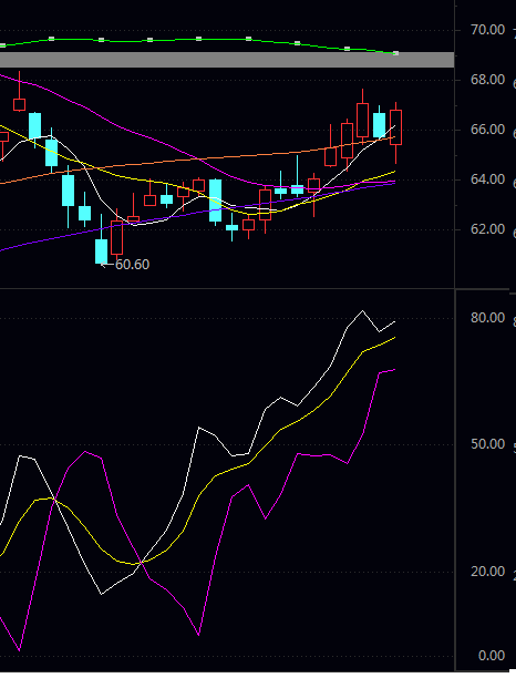 阻力二 68.89 阻力一 68.07 均 价 66.35 支撑一 65.53 支撑二 63.81