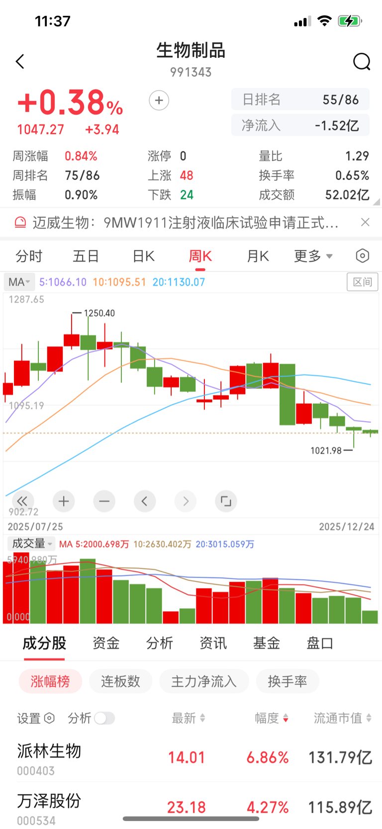 $甘李药业(SH603087)$ 看医药指数周线我感觉是跌不深的,有点空头衰竭的味道,周阴线越来越小,开始十字星 成交量越来越小