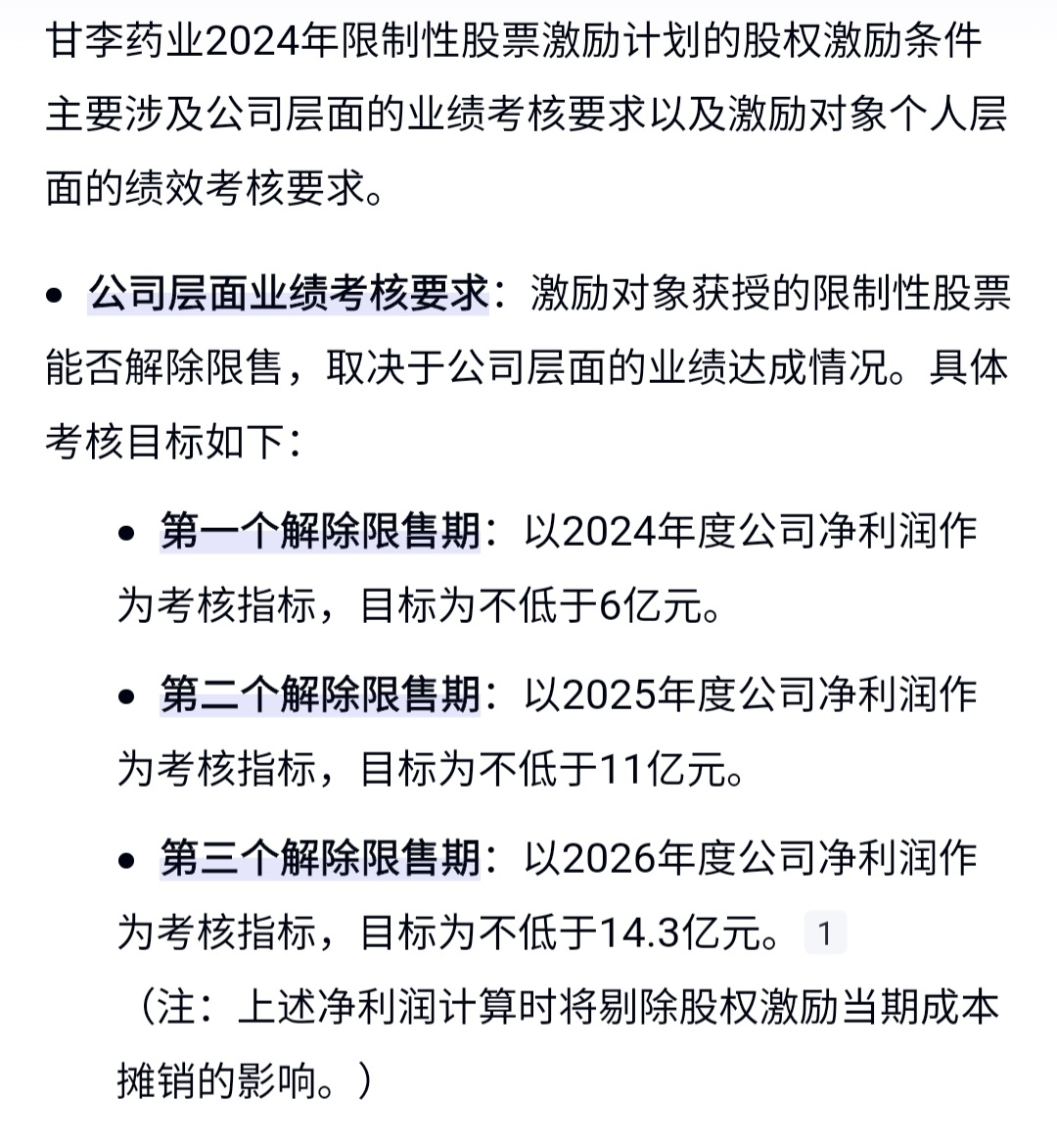 $甘李药业(SH603087)$ 为了股权激励。解除限售股甘李药业也是拼了。不卖子公司达不到股权激励条件。买了正好凑够11亿利润。洗洗睡吧别再解读年报预增公告了。套路满满。又可以卖限售股了。