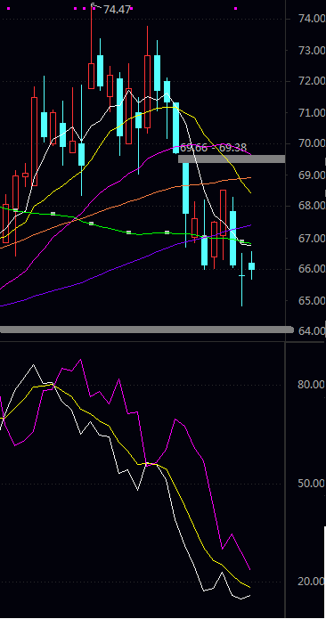 阻力二 66.94 阻力一 66.42 均 价 66.04 支撑一 65.52 支撑二 65.14