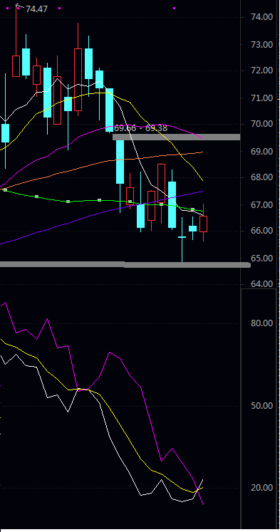 阻力二 67.88 阻力一 67.28 均 价 66.44 支撑一 65.84 支撑二 65.00