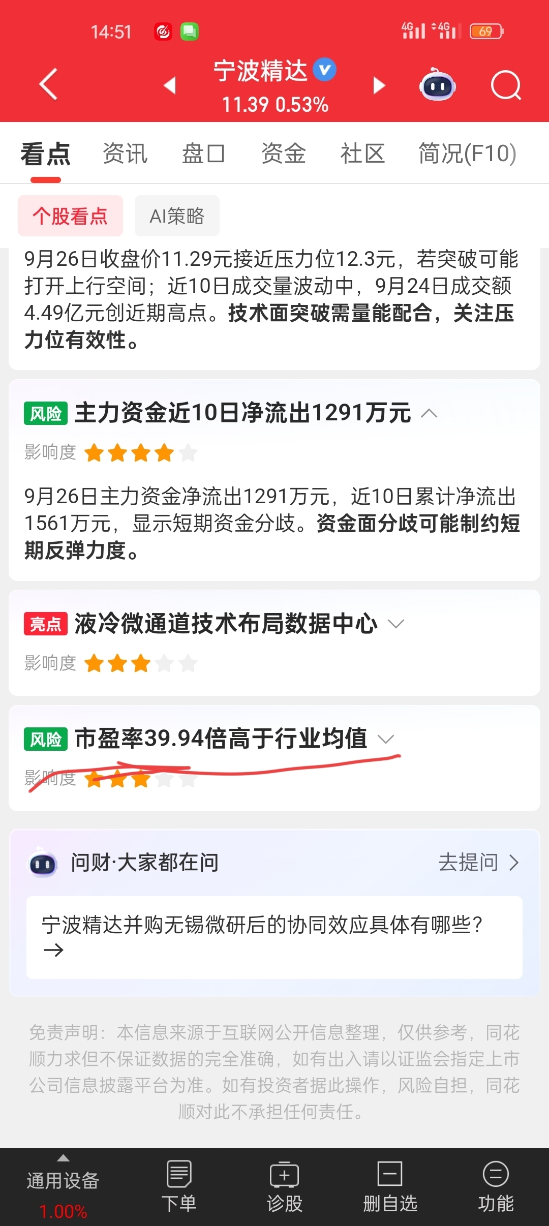 $宁波精达(SH603088)$ 11.44又见对子!难道真的没有上涨空间了吗?太平洋证券预测目标价为12.82元!现已十一元多!细思极恐!市盈率虚高?
