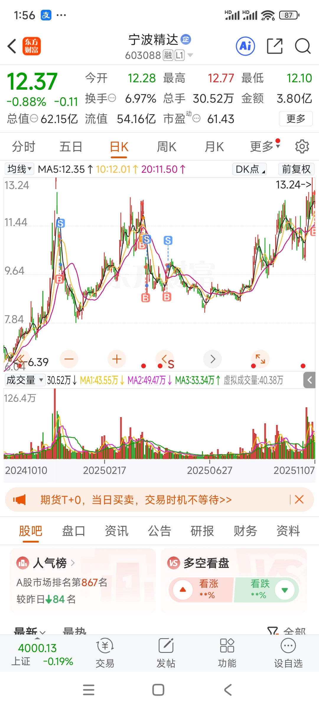 $宁波精达(SH603088)$ 这个票我每次进来就让我大亏出去。