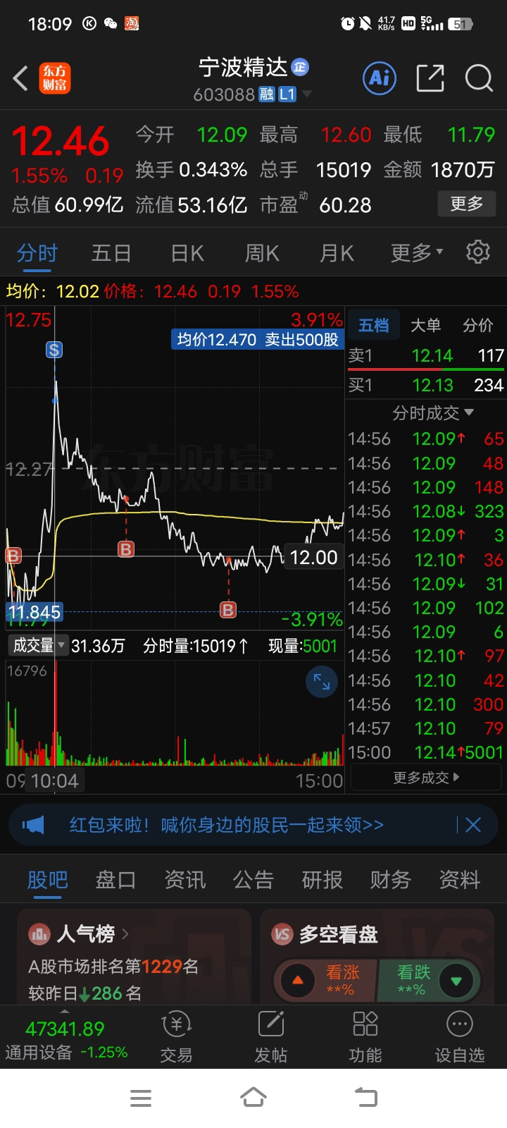 $宁波精达(SH603088)$ 应该全部出掉而不是5手,满仓还亏