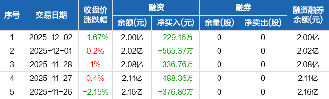 宁波精达:连续5日融资净偿还累计1996.45万元(12-02)