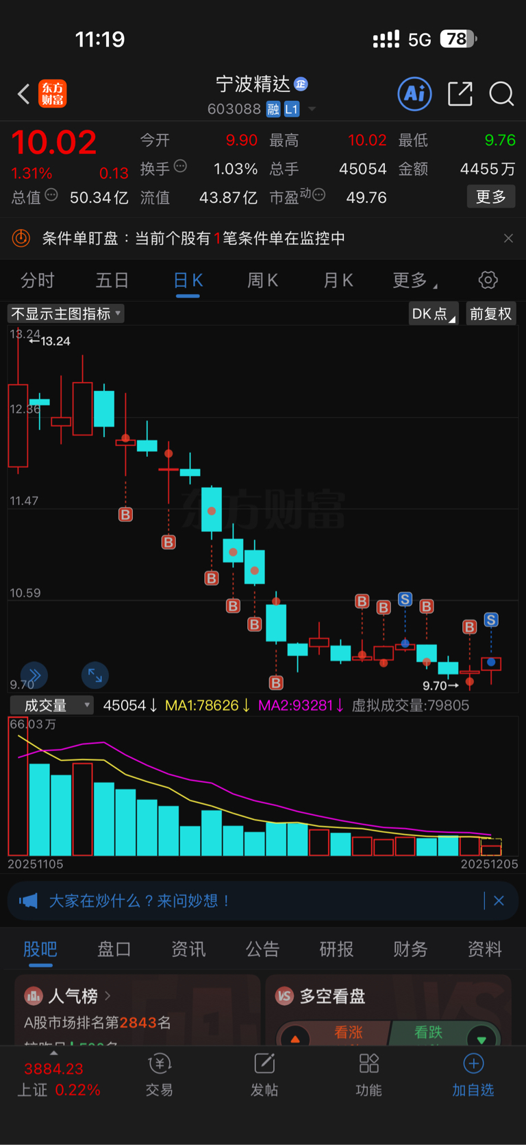 $宁波精达(SH603088)$ 没主力钱多,但比主力更耐心