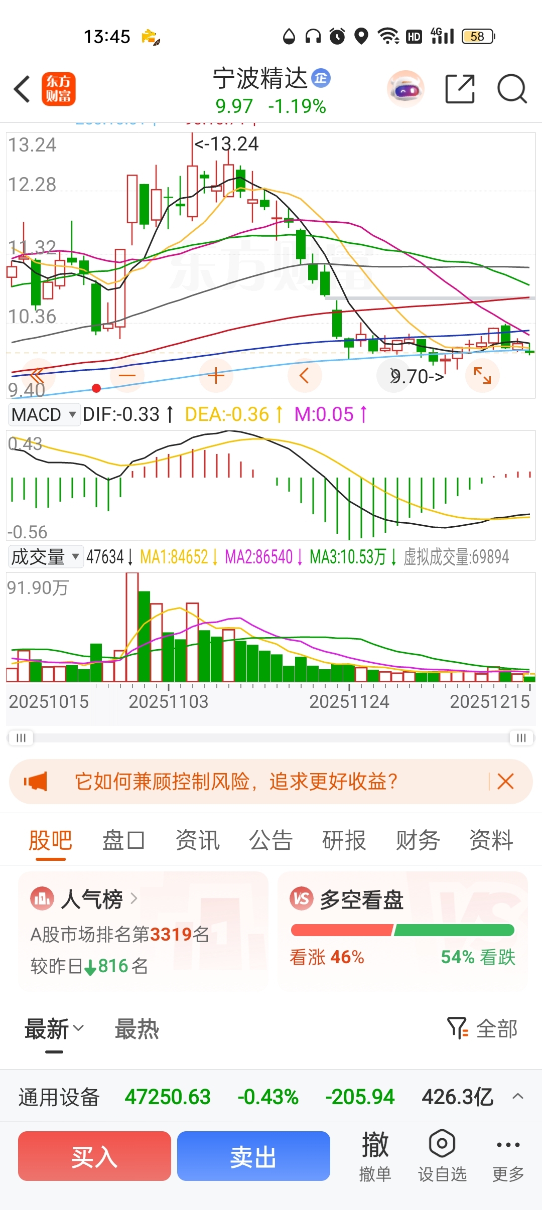 $宁波精达(SH603088)$ 你们不觉得很蹊跷吗?从13.2一路远离5日线下跌30%到9.7大股东马上发公告要清仓减持?难道不是和机构勾结好了让他们先砸了手里的筹码然后12月16号在便宜把手里的股份卖给他们?每次都大跌完了就发公告减持了?怎么跌到一半的时候不发?