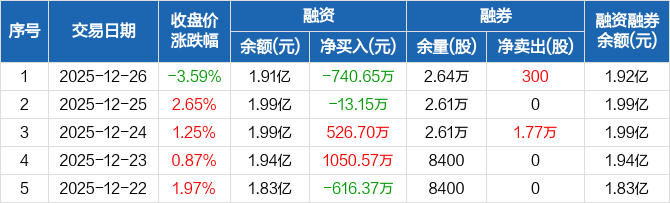 宁波精达:融资净偿还740.65万元,融资余额1.91亿元(12-26)