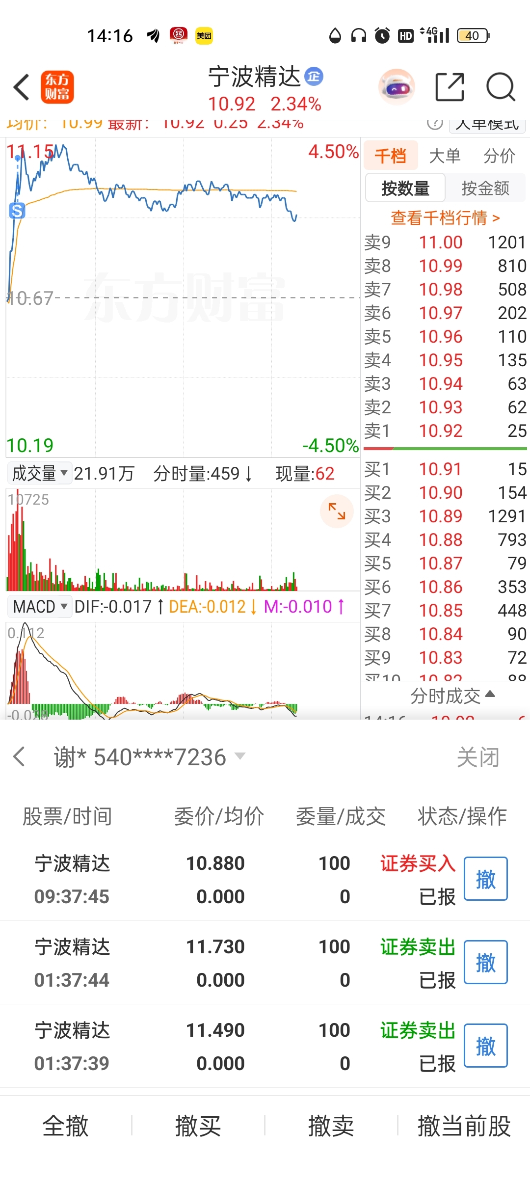 真的,你们得感谢我,你看量化都盯上我了,1手都不让我做成功,10.89他砸掉了,