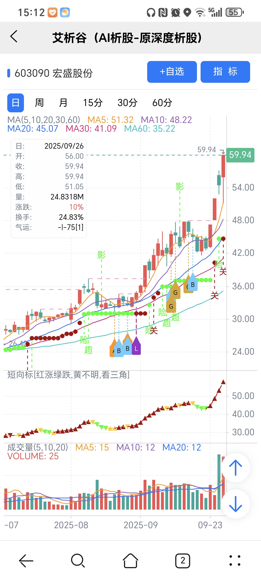 图中A、B、G、L 关注标记是对应AI选股模型当天下午2点多给出。
