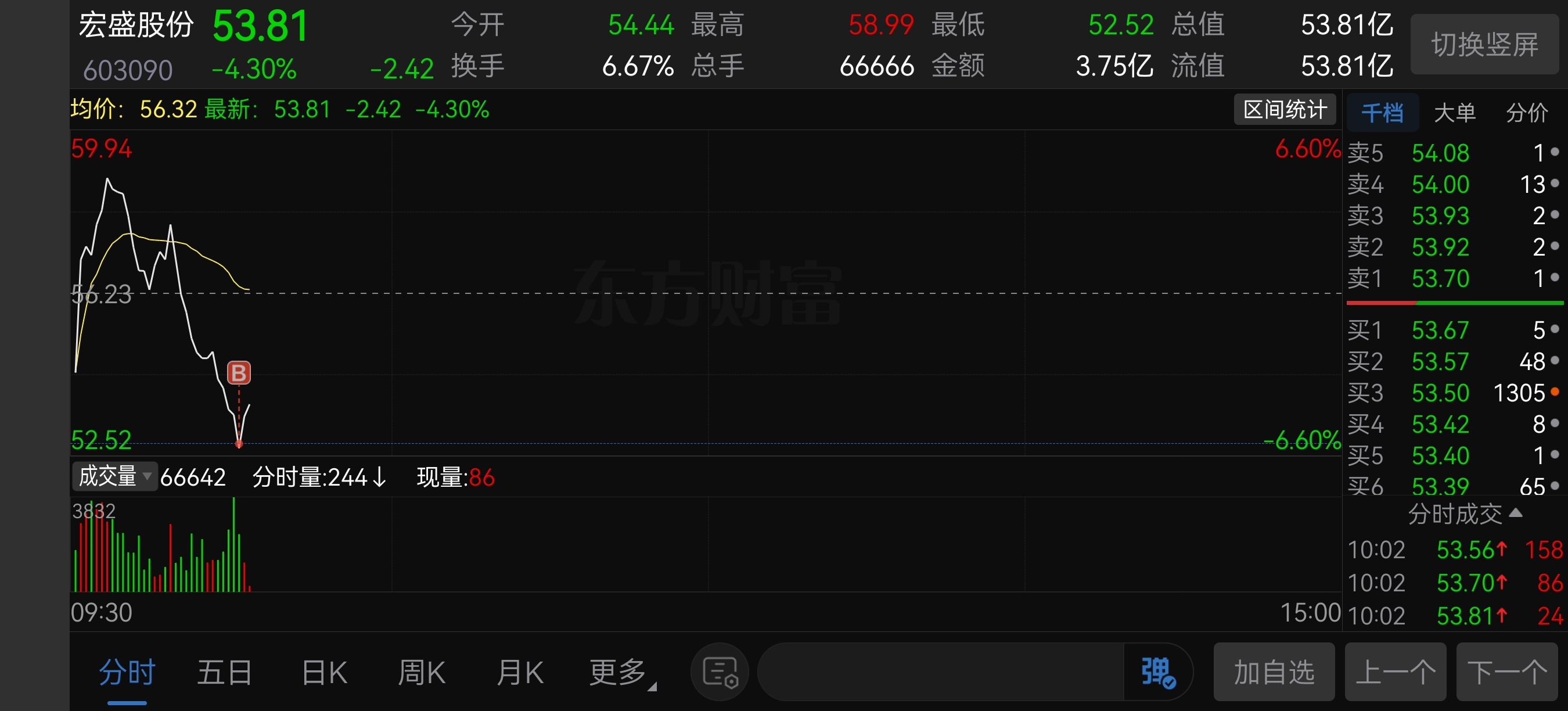 $宏盛股份(SH603090)$ 最低点买入,别人恐慌我贪婪
