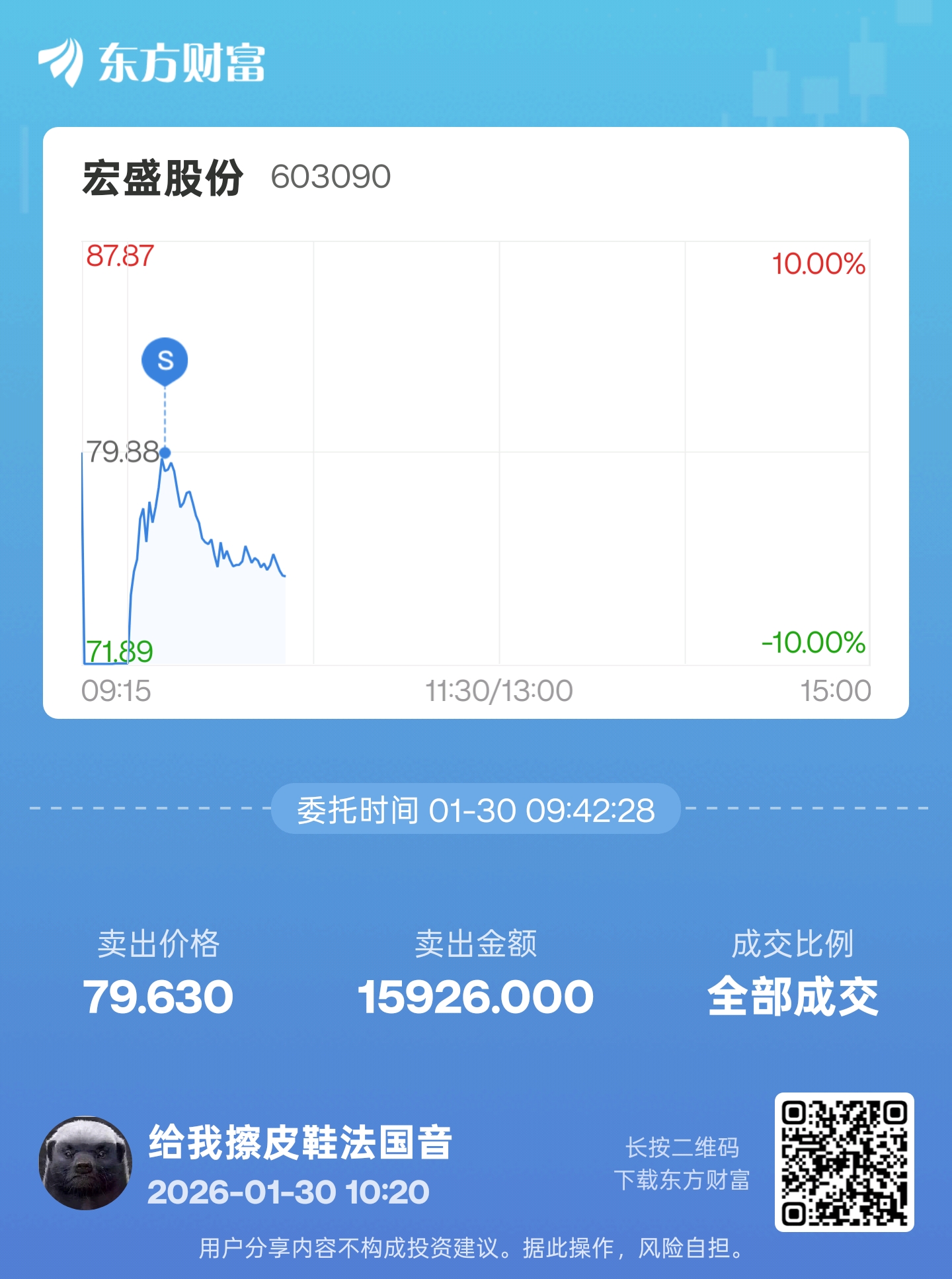 温馨提示: 1.根据《证券法》规定,禁止编造、传播虚假信息或者误导性信息,扰乱证券市场;2.用户在本社区发表的所有资料、言论等仅代表个人观点,与本网站立场无关,不对您构成任何投资建议。用户应基于自己的独立判断,自行决定证券投资并承担相应风险。《东方财富社区管理规定》