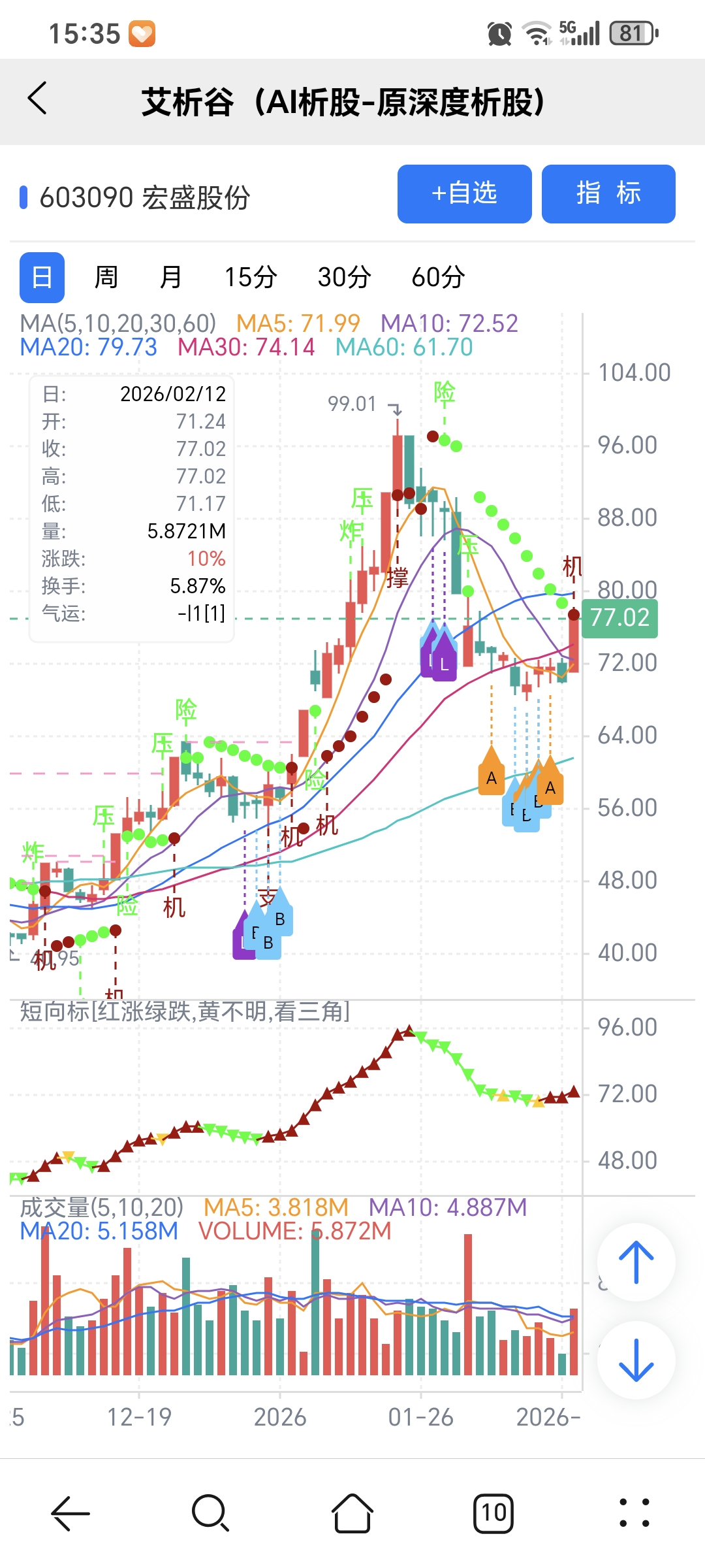 AI模型选股,量化指标识别关键点,简单技术分析确定买卖点,结合量化和人工综合运用,才能有优势。宏盛股份