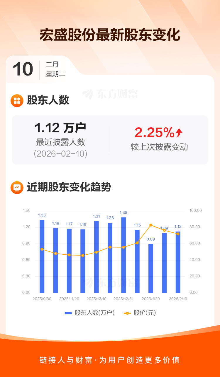 宏盛股份:截至2月10日最新股东户数1.12万户,较上期增加2.25%