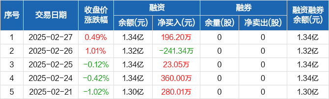 众鑫股份:融资净买入196.2万元,融资余额1.34亿元(02-27)