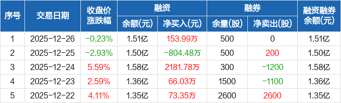 众鑫股份:融资净买入153.99万元,融资余额1.51亿元(12-26)
