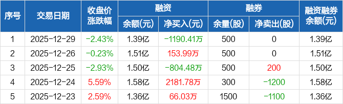 众鑫股份:融资净偿还1190.41万元,融资余额1.39亿元(12-29)