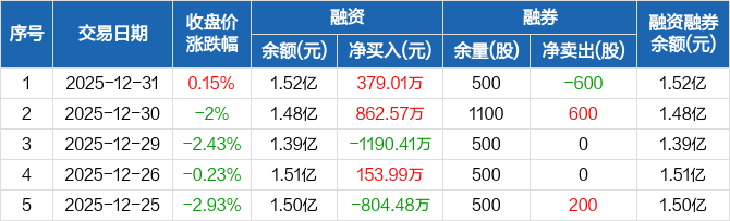 众鑫股份:融资净买入379.01万元,融资余额1.52亿元(12-31)