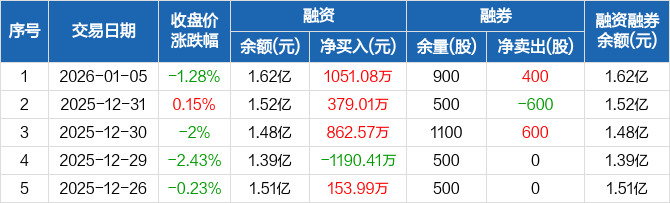 众鑫股份:连续3日融资净买入累计2292.66万元(01-05)