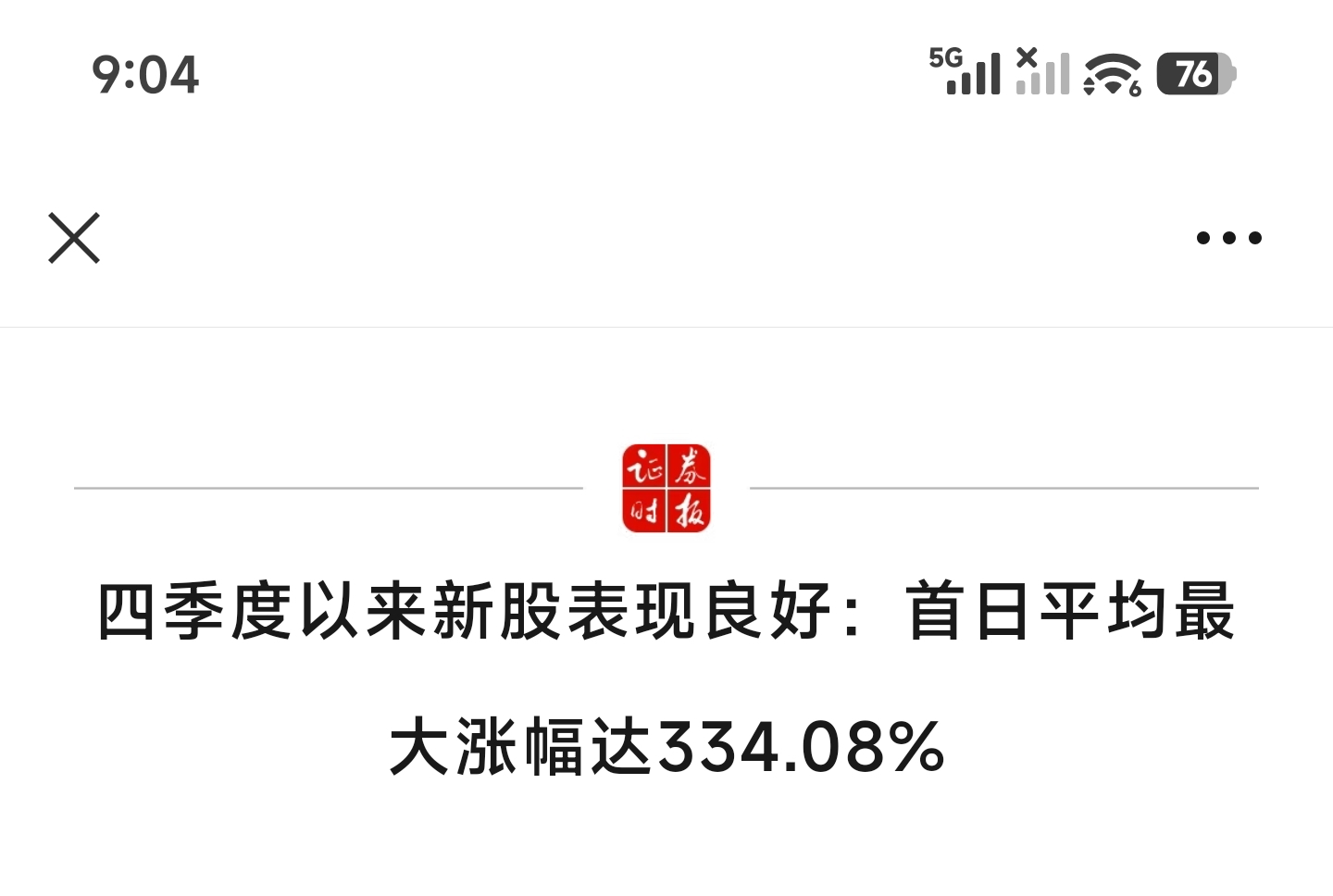 $N德力佳(SH603092)$ 四季度以来,新股首日平均涨幅334%!