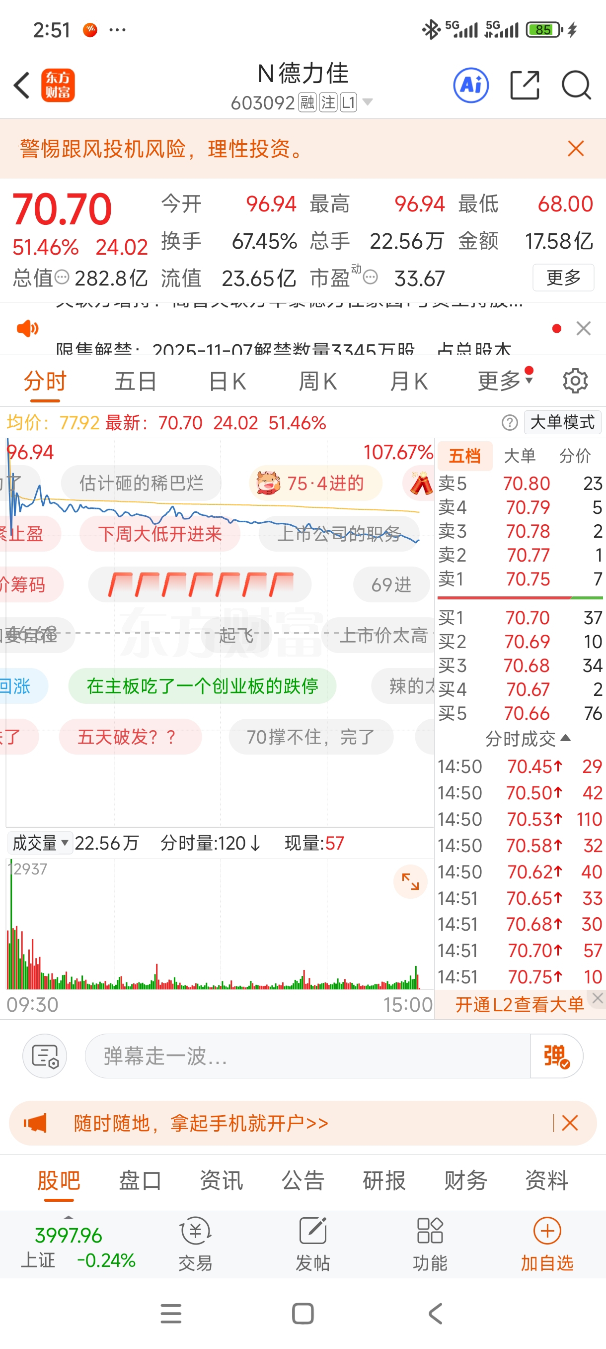 $N德力佳(SH603092)$ 真狠