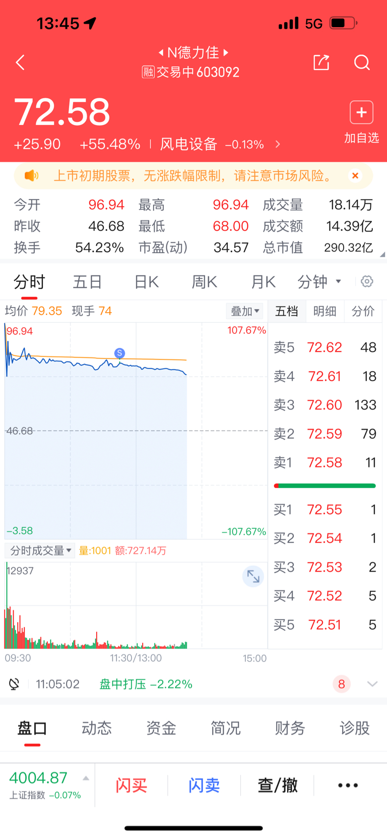$N德力佳(SH603092)$ 78卖的。 不知道卖的对不对。