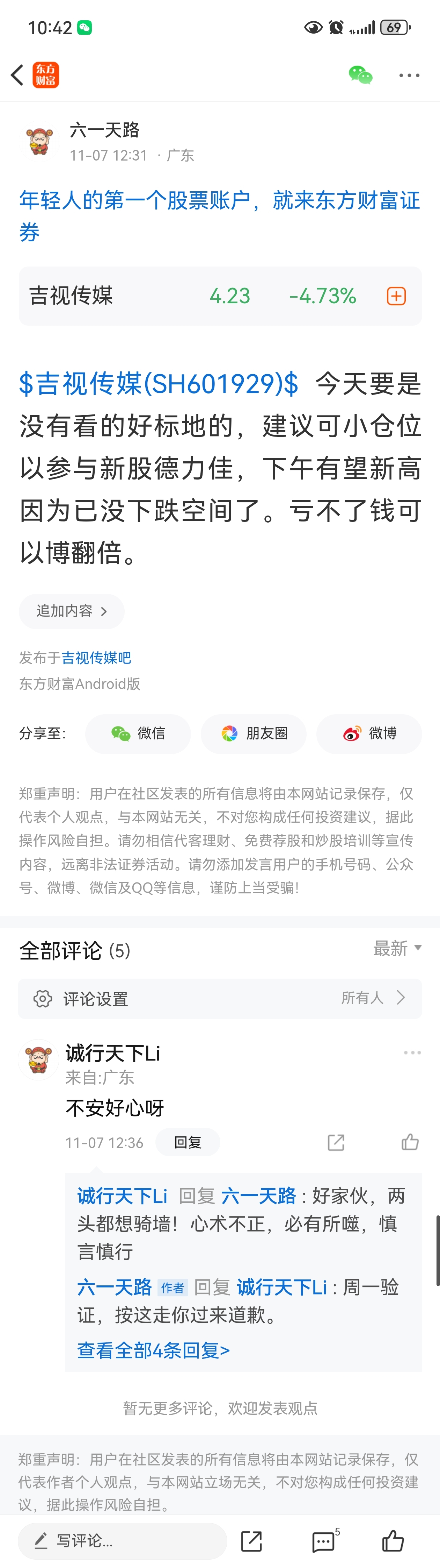 温馨提示: 1.根据《证券法》规定,禁止编造、传播虚假信息或者误导性信息,扰乱证券市场;2.用户在本社区发表的所有资料、言论等仅代表个人观点,与本网站立场无关,不对您构成任何投资建议。用户应基于自己的独立判断,自行决定证券投资并承担相应风险。《东方财富社区管理规定》