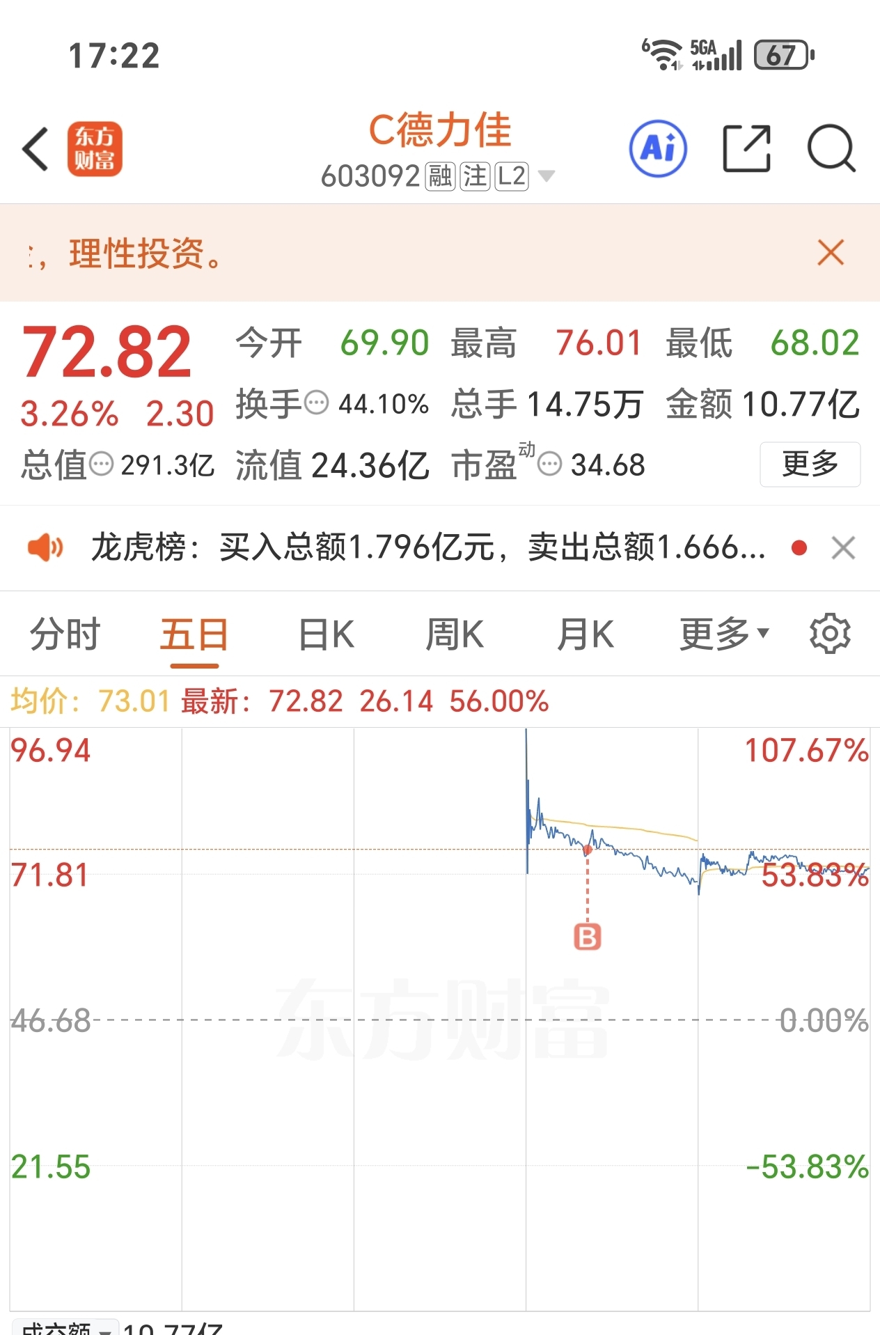 $C德力佳(SH603092)$ 700股,呆五天。涨跌随意
