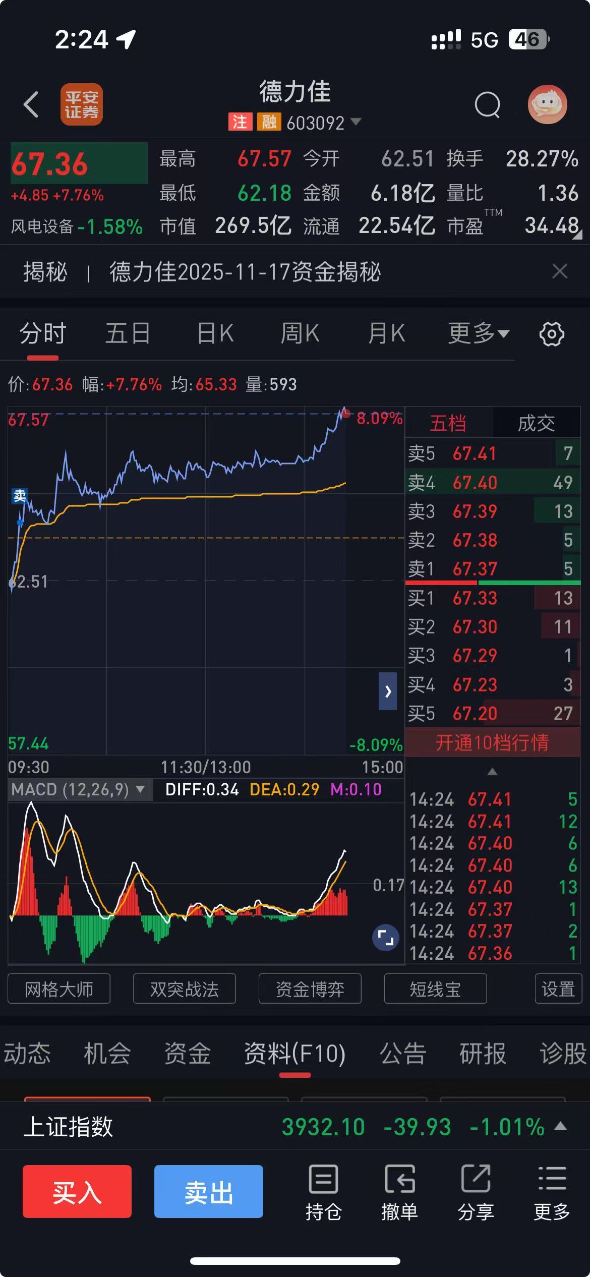 今天要涨停,因为早上我 的卖给主力了