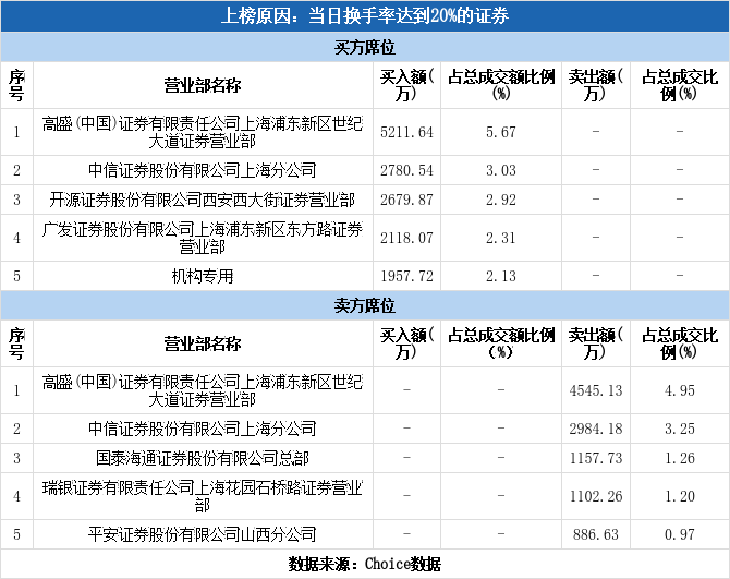 机构现身龙虎榜,德力佳换手率达37.01%(11-20)