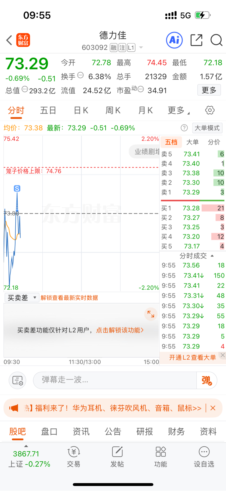$德力佳(SH603092)$ 嘿嘿,跑的及时,看他一直平盘出货就知道今天不行了