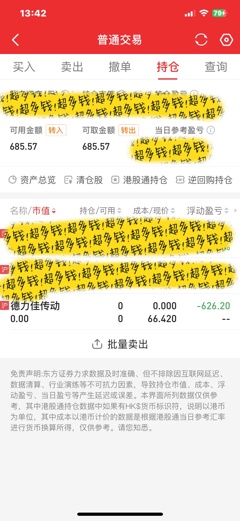 上週五我买了100股得利加70块附近。然后这个股票竟然被砸的这么惨,现在才66块钱。所以别跟女人们一跟就要出事情。@红太狼27000 @上帝之手 $德力佳(SH603092)$