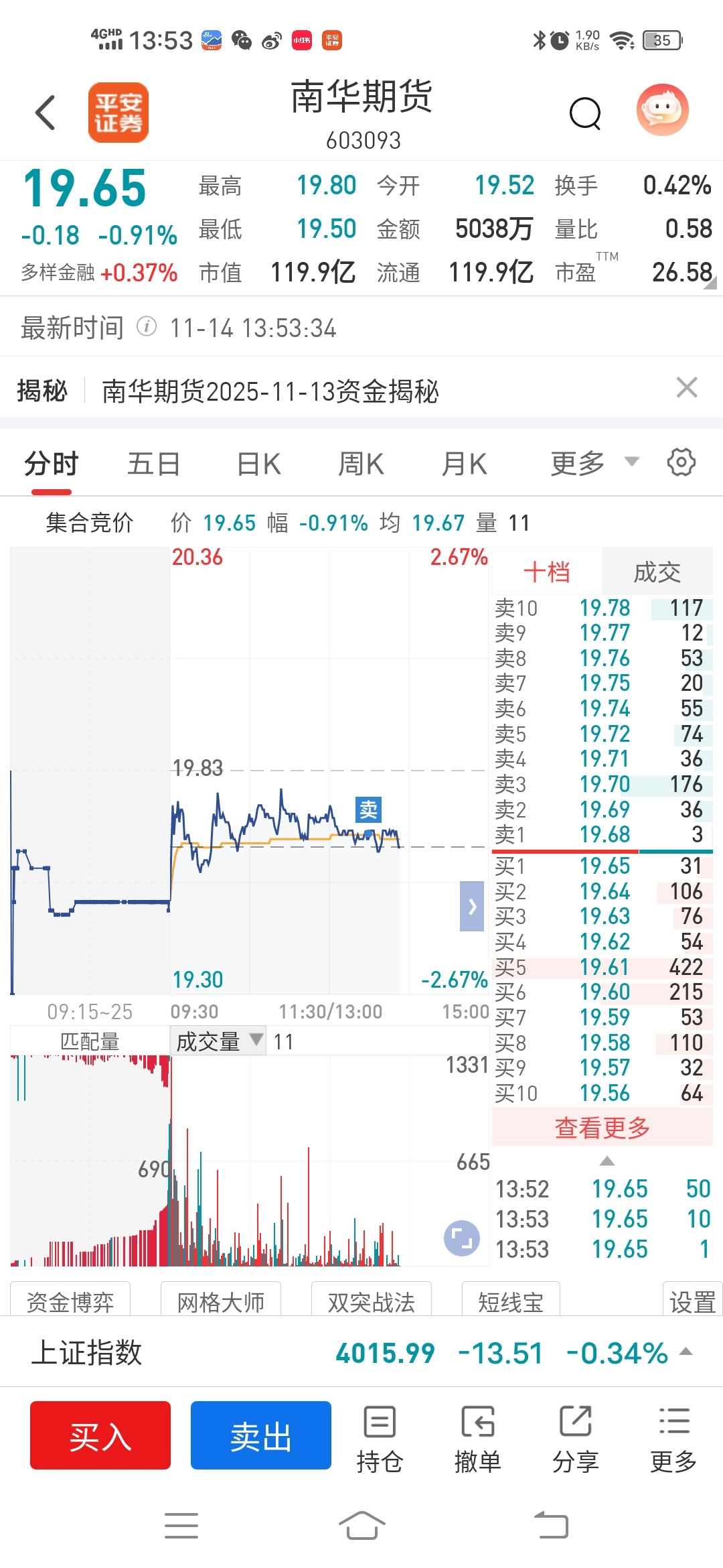 $南华期货(SH603093)$ 它''NND亏局1.5个点,走了