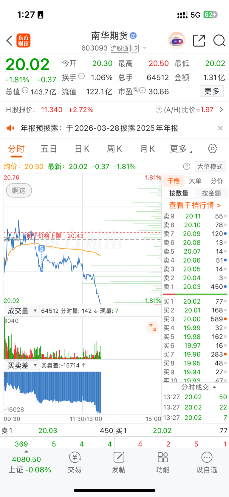 $南华期货(SH603093)$ 怎么一下没看这么拉了,还好减了半仓