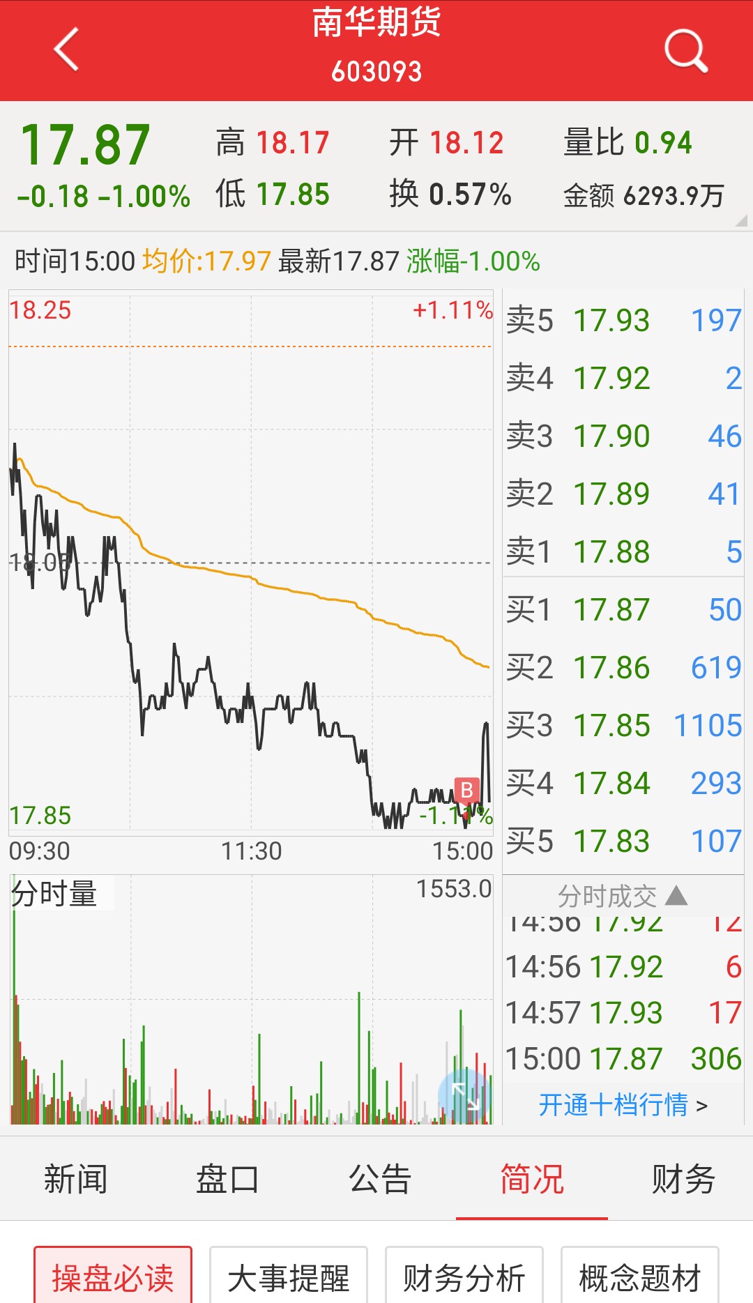 $南华期货(SH603093)$ 昨卖。。今尾盘接回。。你踢我不能踢?