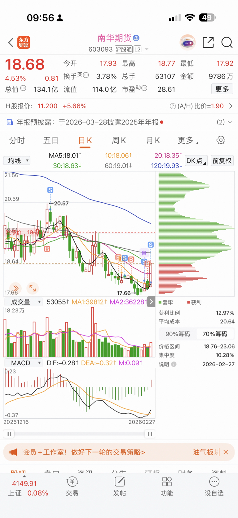 $南华期货(SH603093)$ 早上把恒宝卖了,鬼迷心窍又卖了南华,哎,这波恐惧了