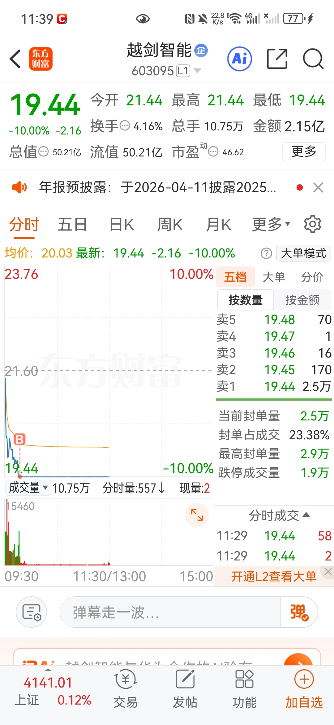 $越剑智能(SH603095)$ 下午会开么?