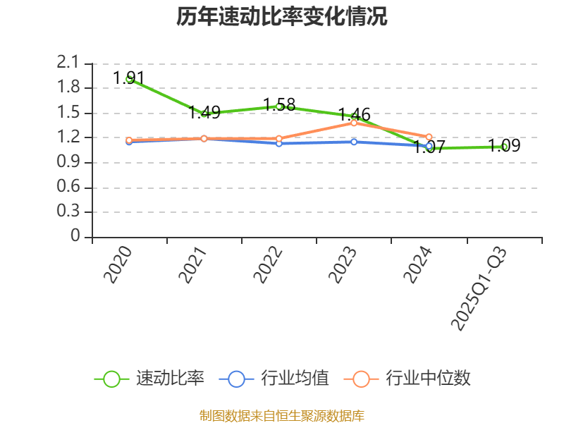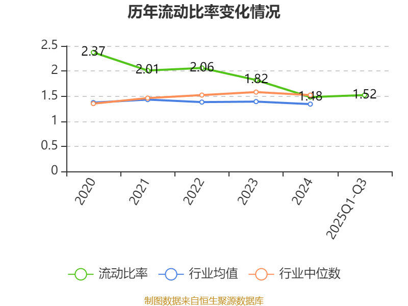 2025年前三季度,公司流动比率为1.52,速动比率为1.09。