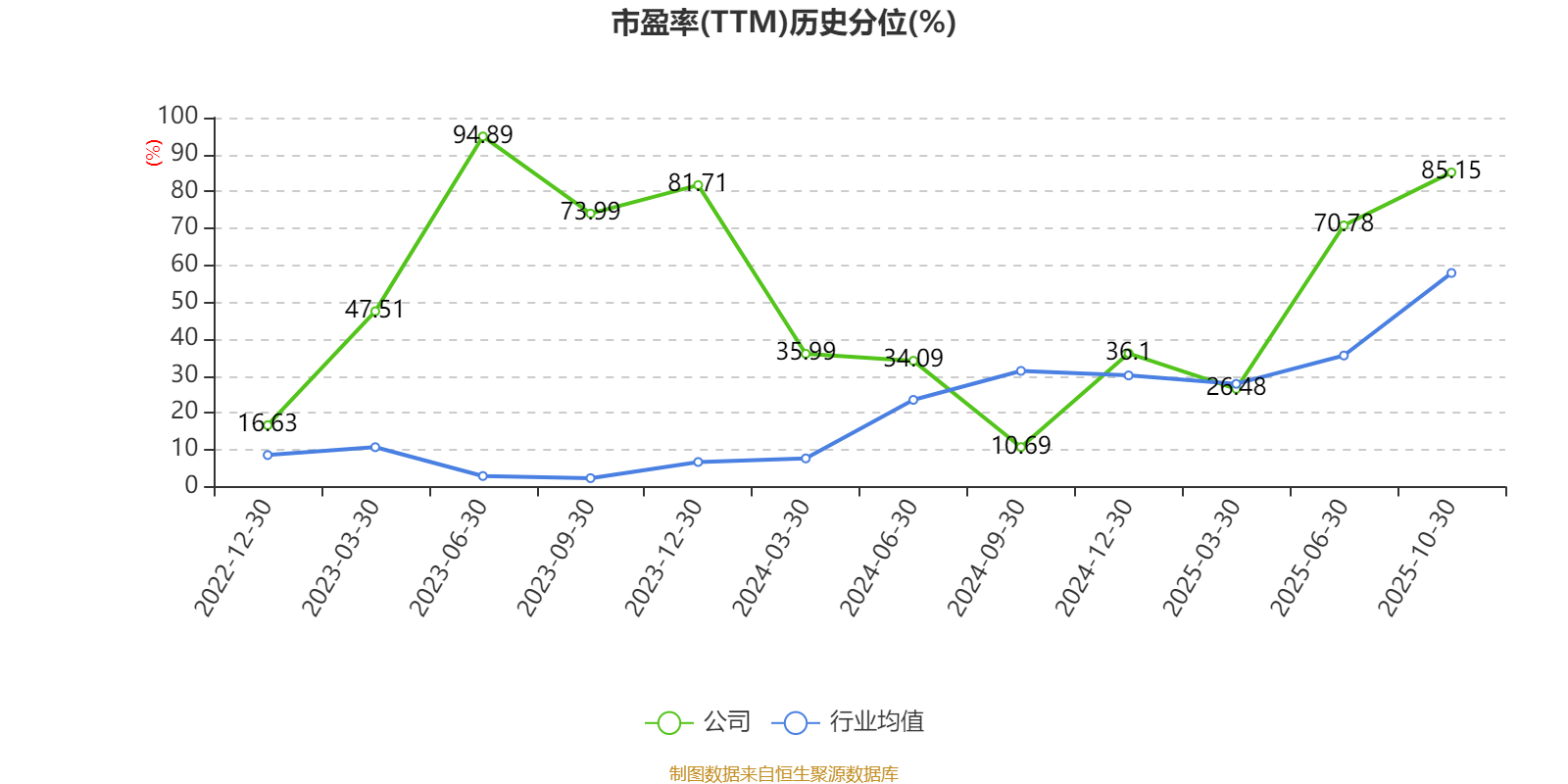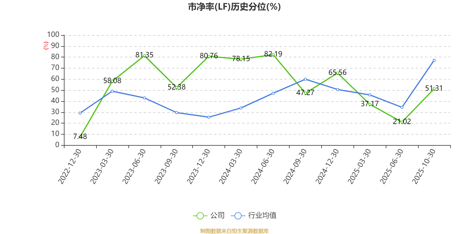 市盈率、市净率为负时,不显示当期分位数,会导致折线图中断。