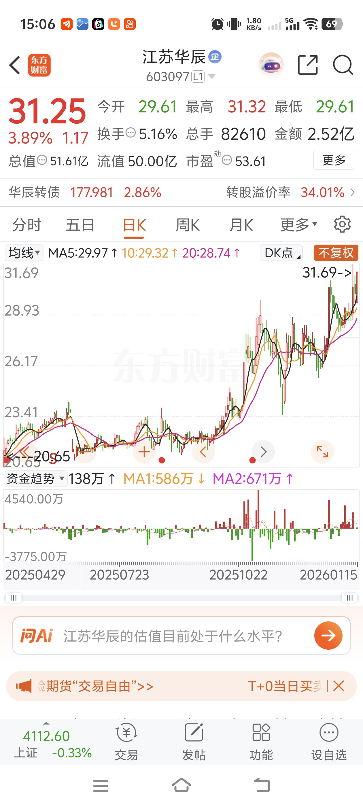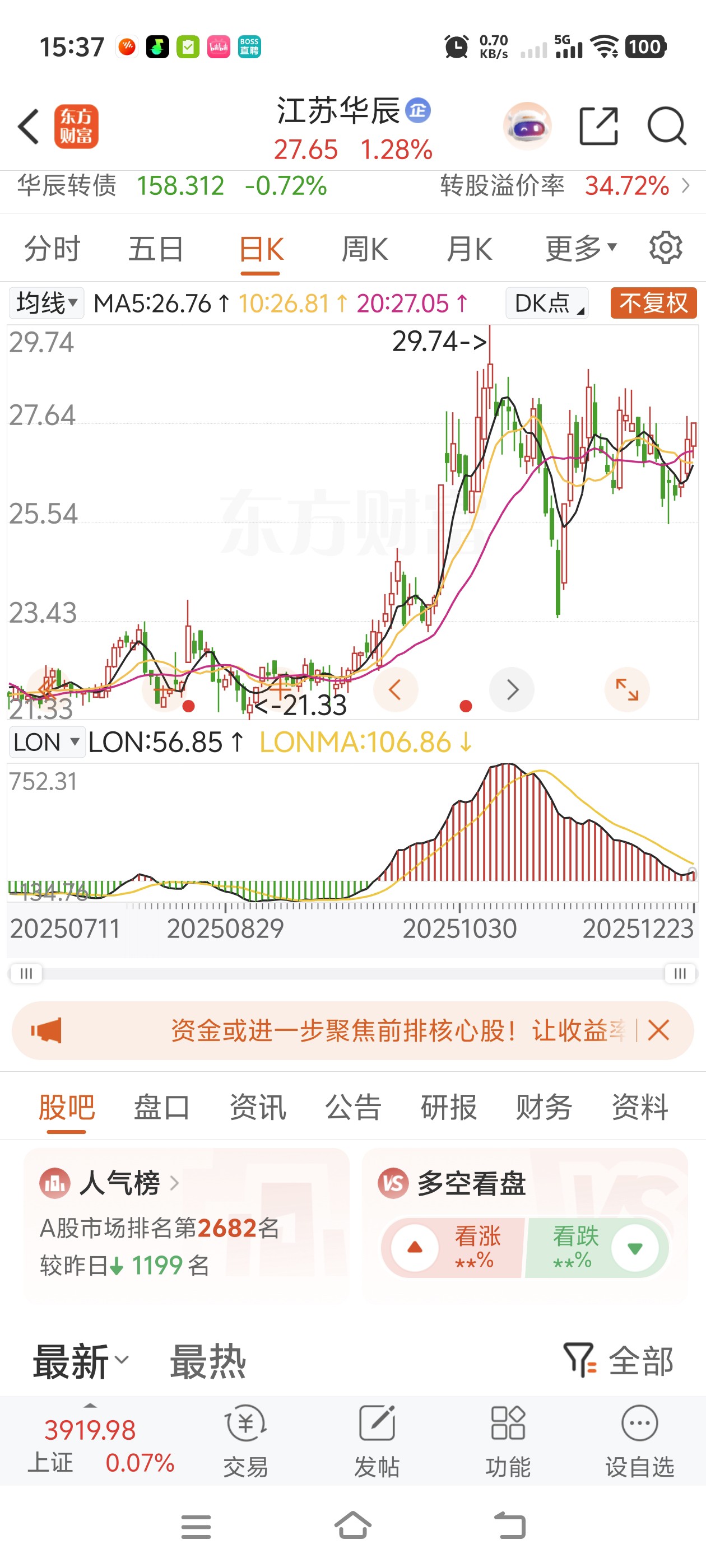 如果大盘不好,下周之后或将冲之前高再次形成小幅回调,只要不破日K生命线25元左右,长线无忧。