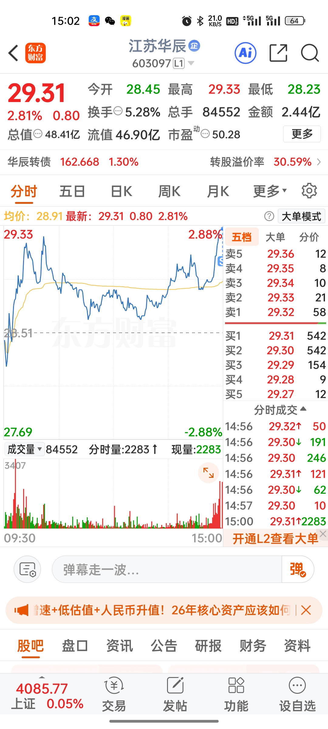 $江苏华辰(SH603097)$ 昨天尾盘卖的,持有了两周,没挣钱走的。大盘大涨板块大涨,它就是不涨,好股多的是没必要在这里继续躲牛市。热点不在这。慢慢磨