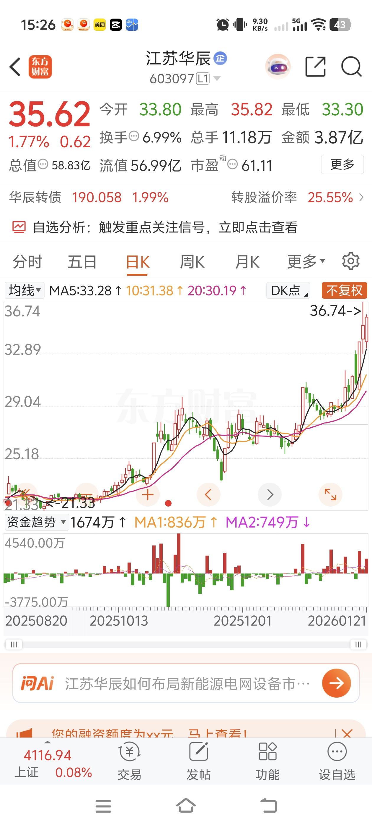 有点妖气了。如果本周再来一个涨停板,那就爽了。不破支撑多看少动。这两天一直有庄在