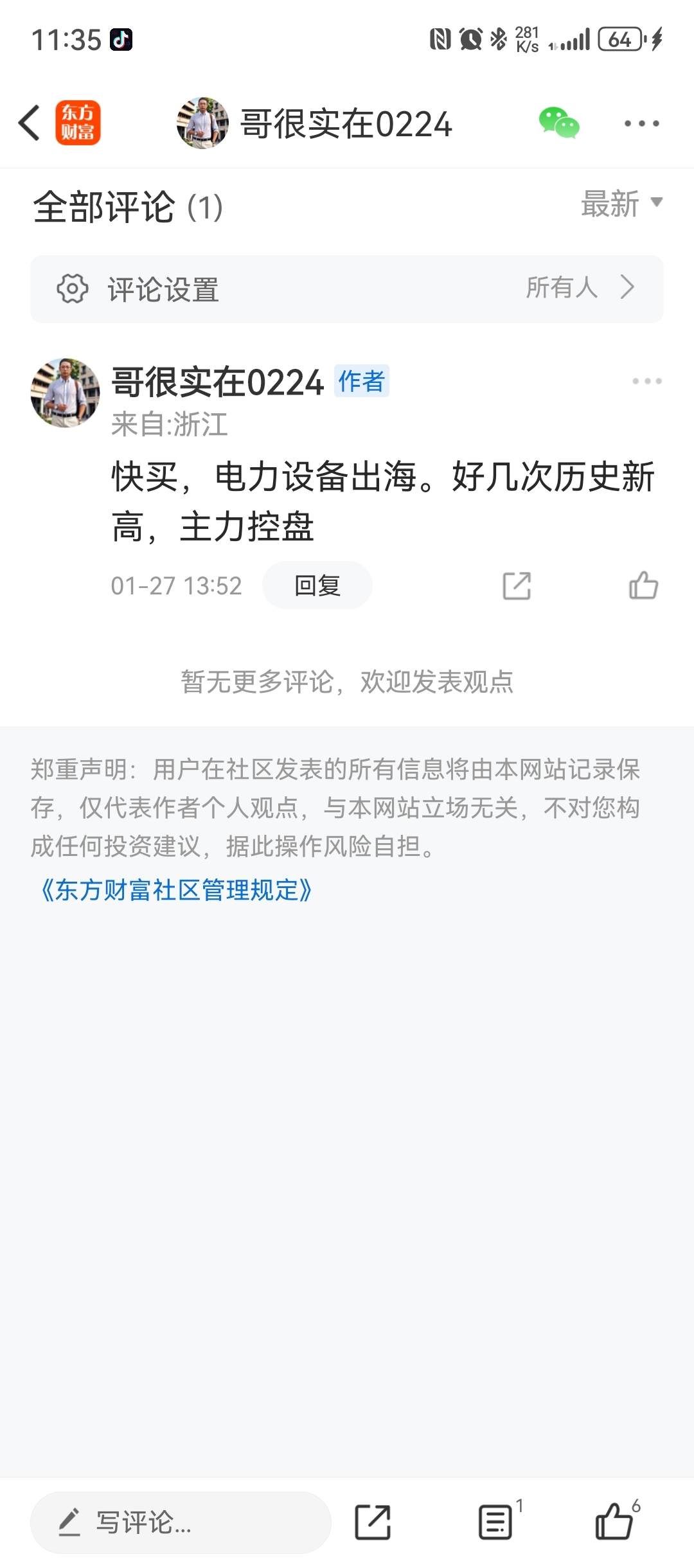 温馨提示: 1.根据《证券法》规定,禁止编造、传播虚假信息或者误导性信息,扰乱证券市场;2.用户在本社区发表的所有资料、言论等仅代表个人观点,与本网站立场无关,不对您构成任何投资建议。用户应基于自己的独立判断,自行决定证券投资并承担相应风险。《东方财富社区管理规定》