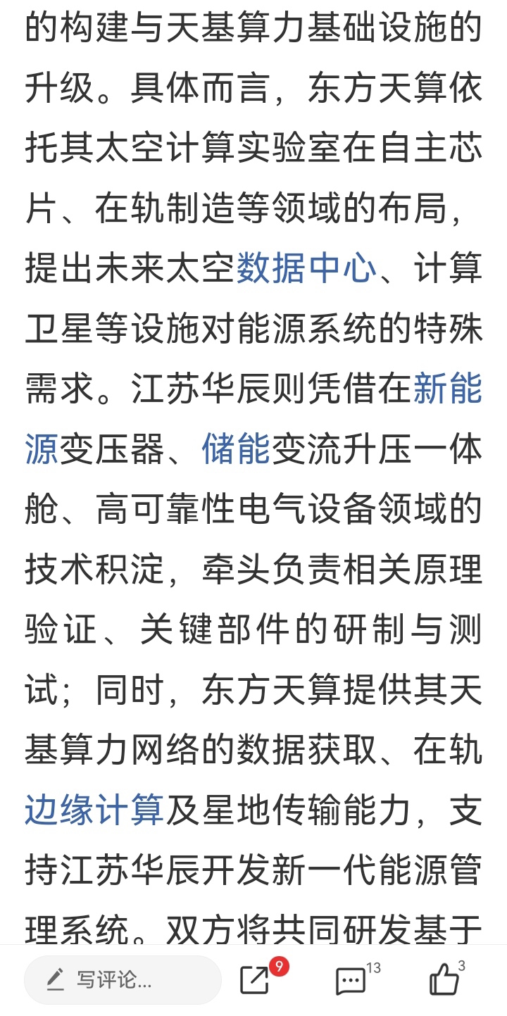 这个公告是不是表示“华辰”也搭上太空算力了?