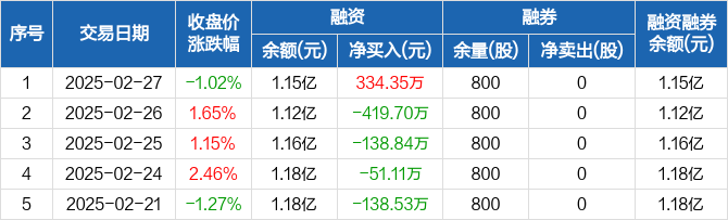 森特股份:融资净买入334.35万元,融资余额1.15亿元(02-27)