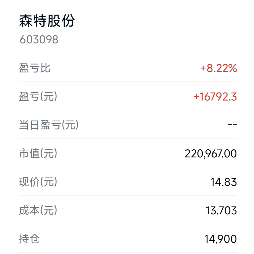 $森特股份(SH603098)$ 感谢森特,伟大的公司
